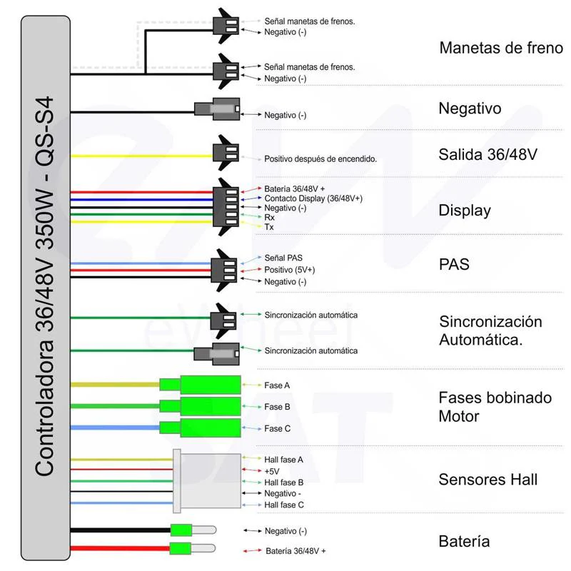 Valmiit liittimet (moottorin vaihejohdot, hall-anturit, jarrut, akku jne.)